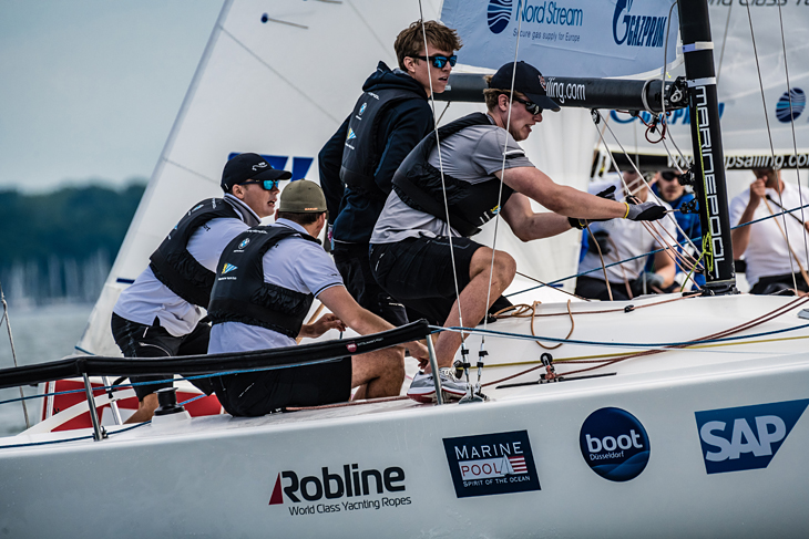 Für das neu zusammengestellte Team des Deutschen Touring Yacht-Clubs (DTYC) hat es nur zum Rang 16 gereicht. Hier haben sich die durch die strengen Coronabeschränkungen fehlende Trainingstage auf dem Wasser bemerkbar gemacht. Teammanager Paddo Follmann: "Schwierigkeiten lagen insbesondere in den Startsituationen und bei engen Tonnenmanövern, bei denen die erfahreneren Teams oftmals einen etwas besseren Überblick hatten und sich besser positionieren konnten. Dennoch hat das Team in Kiel sehr viel gelernt und konnte am letzten Tag noch etwas ans Mittelfeld heranrücken".