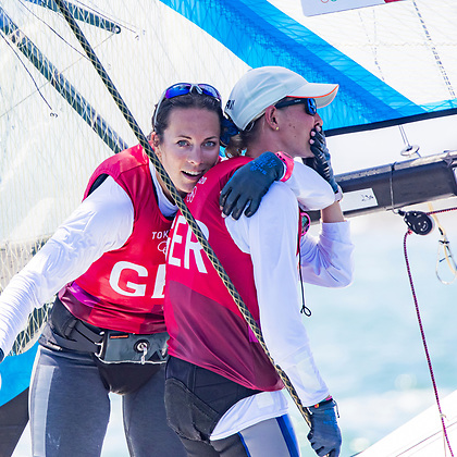 Tina Lutz vom Chiemsee Yacht Club gewinnt gemeinsam mit Susanne Beucke Silber im 49erFX. Normalerweise starten die besten Krimis im TV um 20:15 Uhr. Heute aber mussten die Segelfans früh aufstehen um einen der besten Segelkrimis zu sehen. Alle drei Medalle Races waren an Dramatik kaum zu überbieten und führten zu einem historischen Tag für den deutschen Segelsport. Susann Beucke beschrieb die Bedingungen zum Medalrace im ZDF Interview mit "Champagner Sailing".